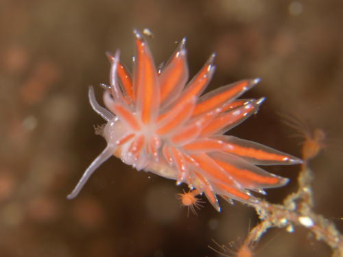 画像はウチワミドリガイ、アカエラミノウミウシ。(店長撮影)