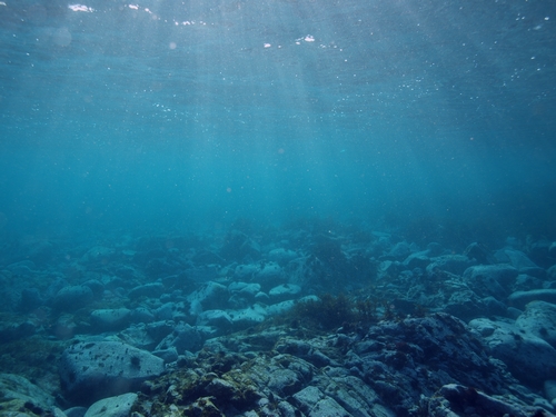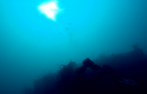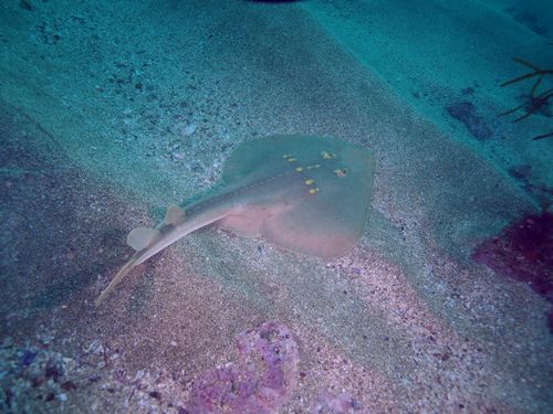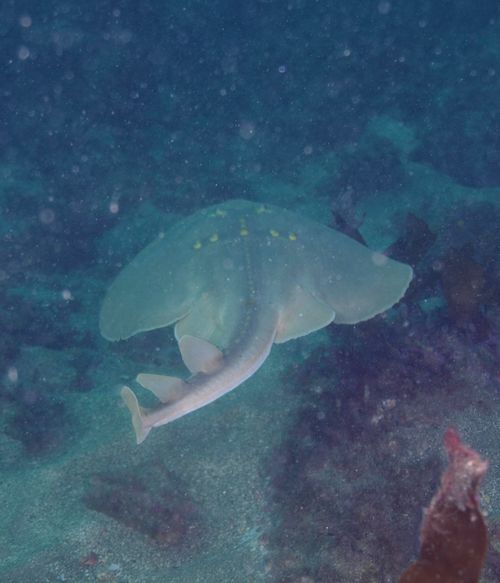 ずっと沖まで行き、白瀬ビーチで水深14メートル超えしたら、ウチワザメに遭遇しました!