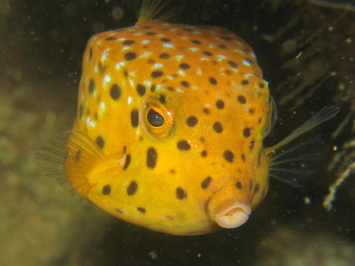 マツカサウオ、リュウモンイロウミウシミナミハコフグ幼魚、