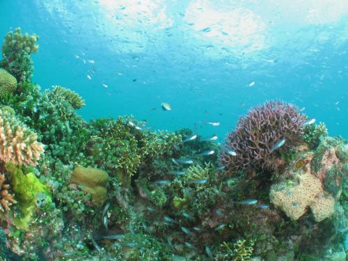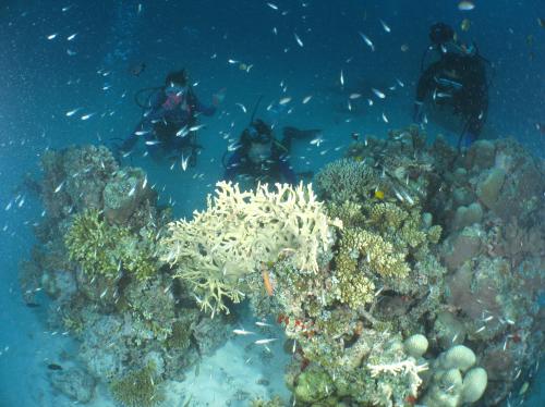 小さなエイ(ヒラタエイ)やイッテンチョウチョウオなども見れました。