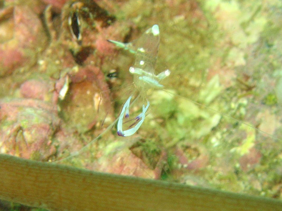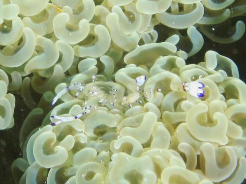 透明度良いおかげでセトヤドリエビ、アマミコシオリエビ、ビシャモンエビ、