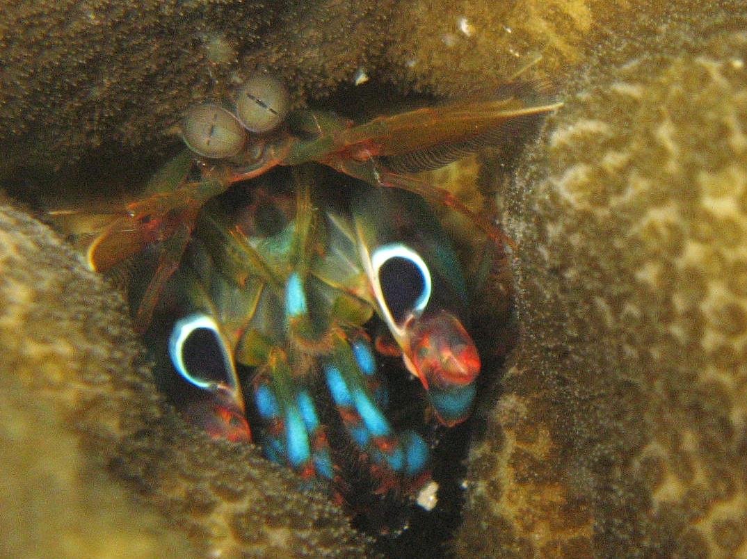 フジナミウミウシ、ハナオトメウミウシ、バクダンウニとアオサハギ、ビシャモンエビ、カザリイソギンチャクエビ、モンハナシャコ