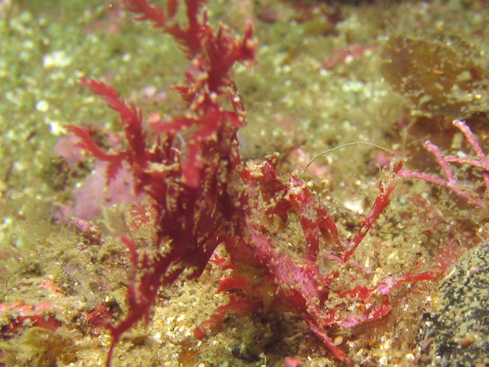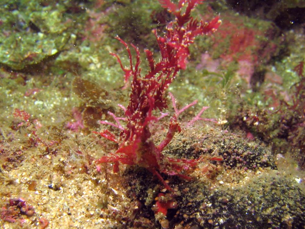 赤のコノハガニ発見!赤の海藻に擬態しすぎて...