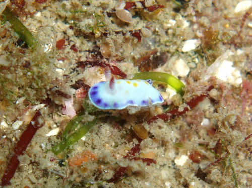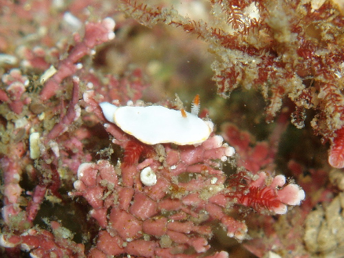 小さくて綺麗なマダライロウミウシ、真っ白なキセワタガイ