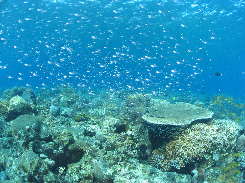 浅いところに戻って珊瑚&熱帯魚の乱舞を楽しむ
