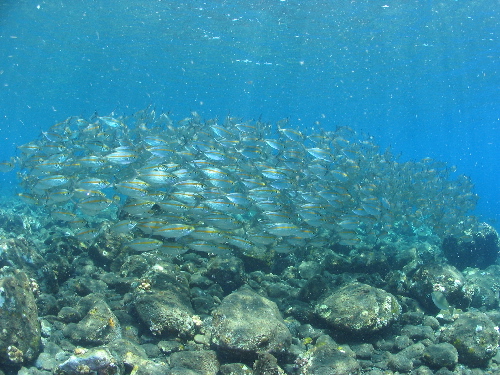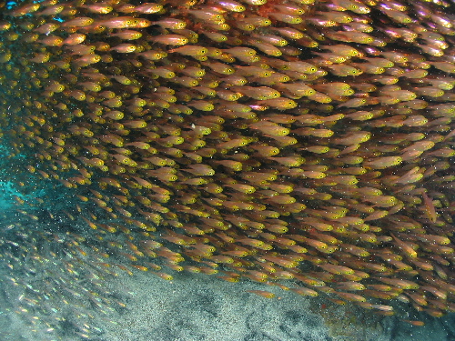 あきらめかけたそのとき遠くで魚の大群の影が...