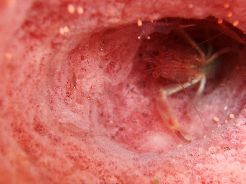 ちょっと深めの場所にあるカイメンにエビが隙間がないほどエビが群がっていました。(主にスダクサラサエビ&アカシマシラヒゲエビ)