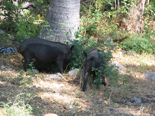 バリの黒豚がうろちょろ...鶏もうろちょろ...