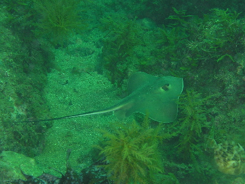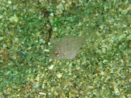 8/10に続き、2ダイブともにかわいいアカエイの子供(50cm)が見られました。