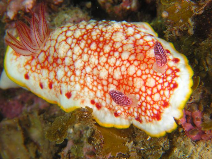 久しぶりにミツイラメリウミウシ!(福見君が発見、写真左)