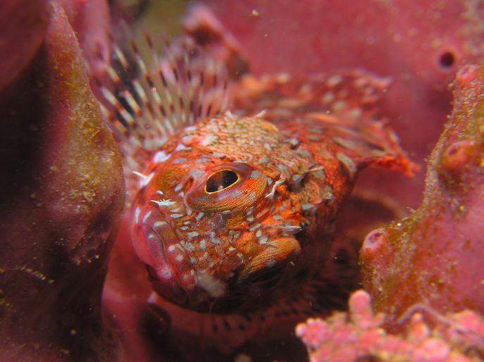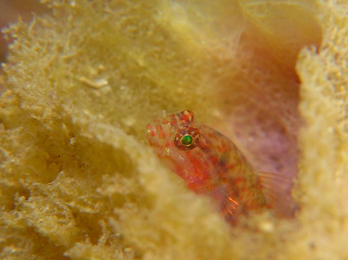 カイメンの中にイソハゼの仲間が顔を覗かせていました。(写真中)