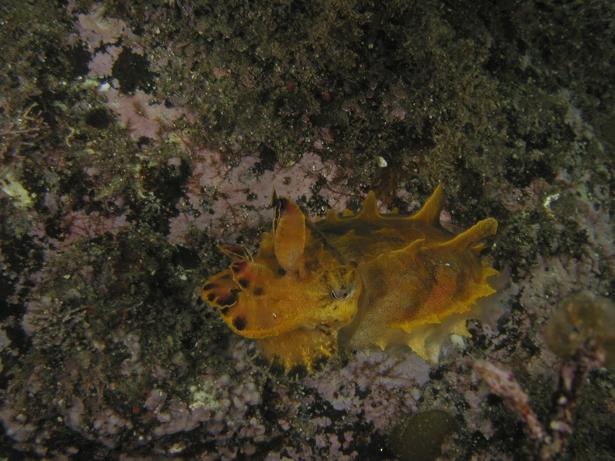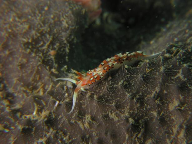 お天気今一のおかげで夜行性のキヌハダウミウシ、アカボシウミウシ(写真右)も多く見られます。